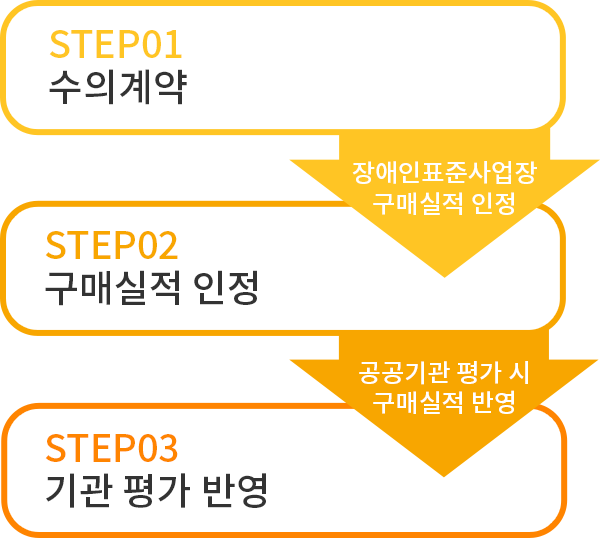 장애인표준사업장과 수의계약 시 ‘장애인표준사업장 생산품 구매실적 인정’ 및 ‘공공기관 평가’에 반영됩니다.